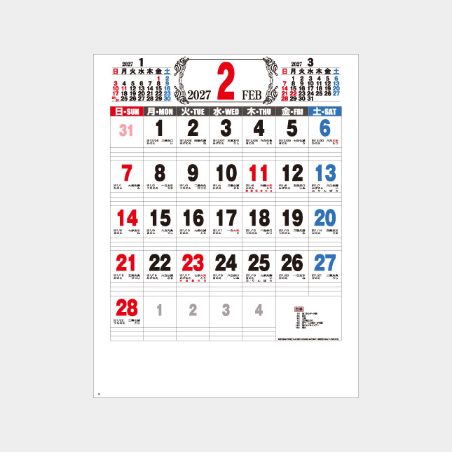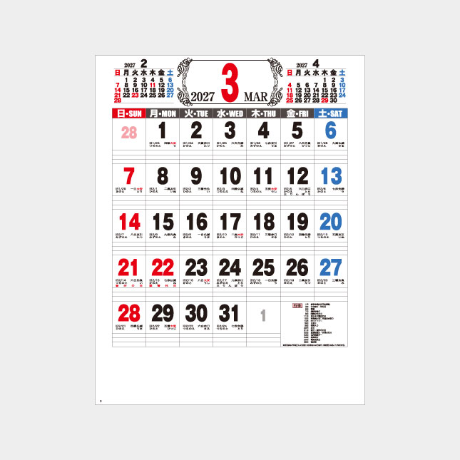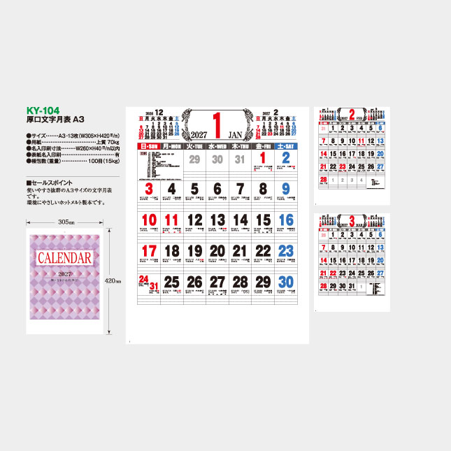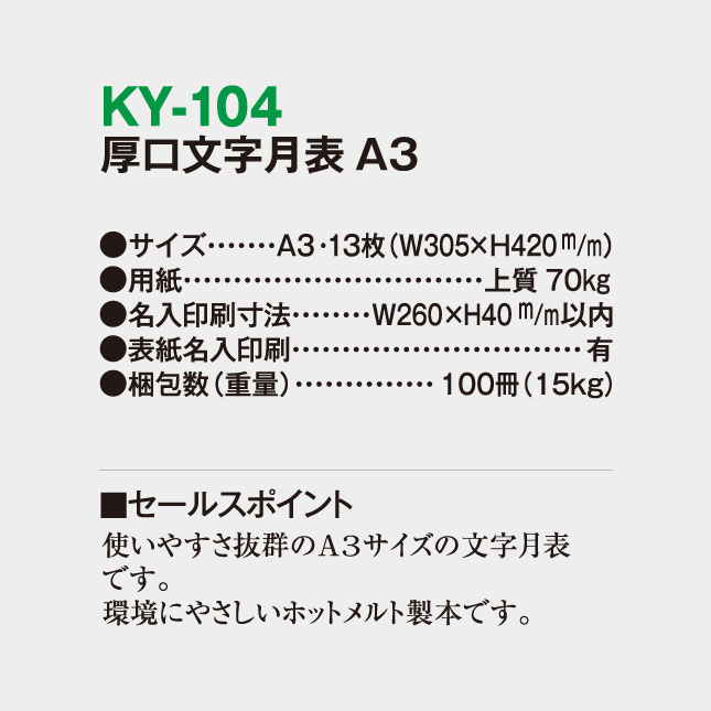 厚口文字月表 A3(行事付) KY-104 の特徴