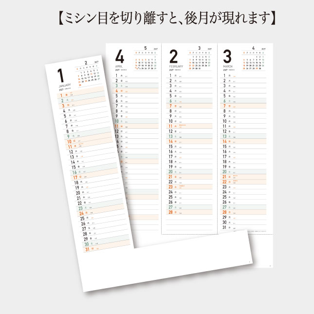 さらにミシン目て切リ取ることて、常に2ヶ月先まて見ることがてきます。