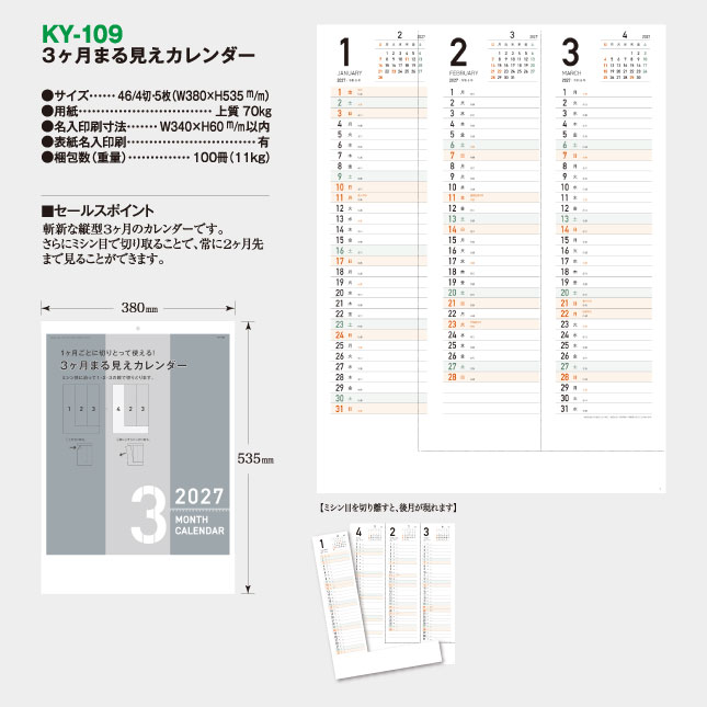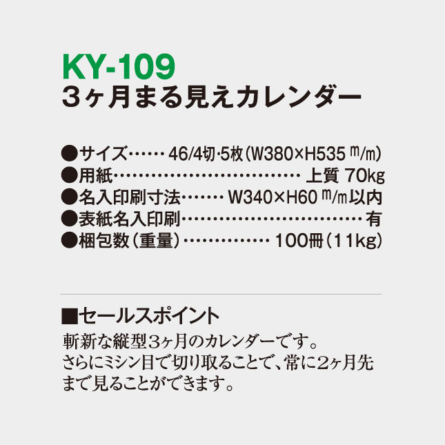 3ヶ月まる見えカレンダー KY-109 の特徴