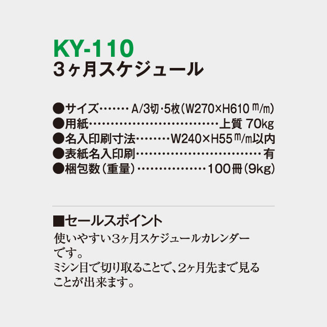 3ヶ月スケジュール KY-110 の特徴
