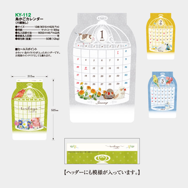 鳥かごカレンダー(六曜無し) KY-112 の特徴