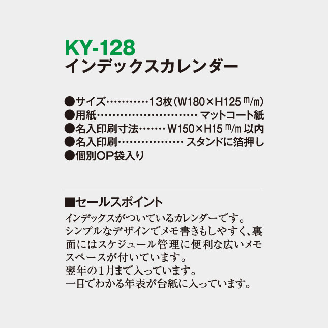 卓上 インデックスカレンダー KY-128 の特徴