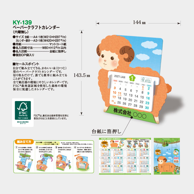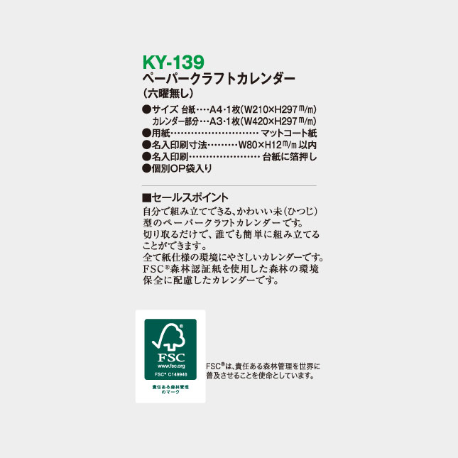卓上 ペーパークラフトカレンダー KY-139 の特徴