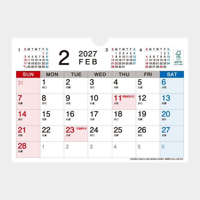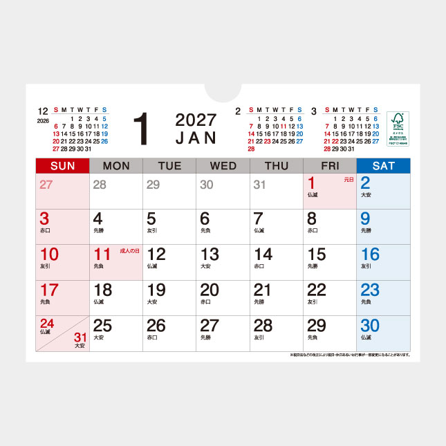 FSC森林認証紙を使用した森林の環境保全に配慮したカレンダーです。