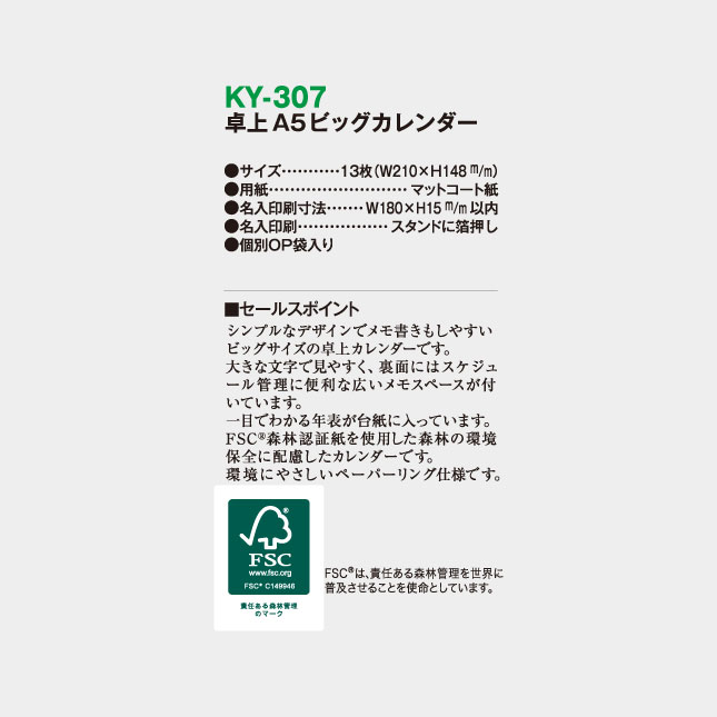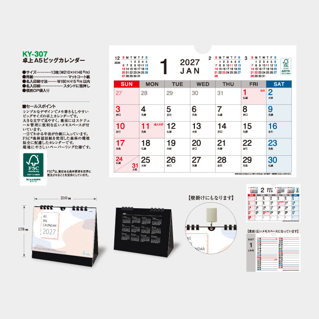 卓上 A5ビッグカレンダー KY-307 の特徴