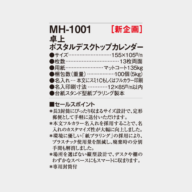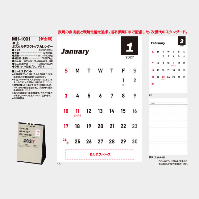 卓上 ポスタルデスクトップカレンダー MH-1001 の特徴