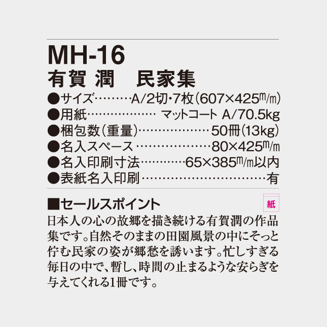日本人の心の故郷を描き続ける有賀潤の作品集です。