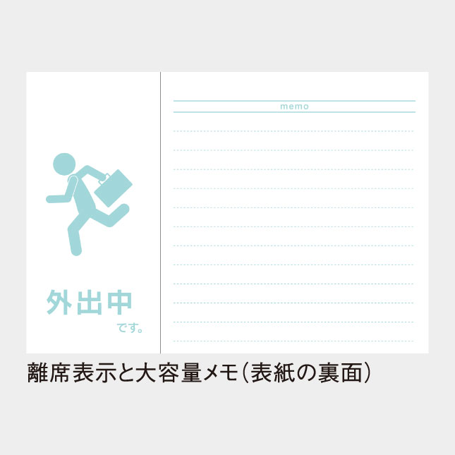 ・裏面には、オフィスワークに便利な離席表示(※1)と、大容量メモ付です。