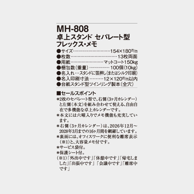 卓上 スタンド・セパレート型 フレックス・メモ MH-808 の特徴