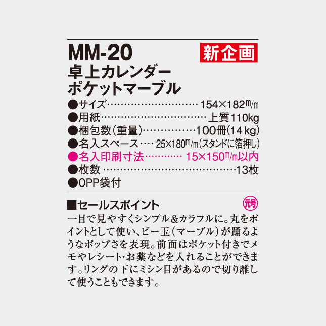 卓上 ポケットマーブル MM-20(NK-576) の特徴
