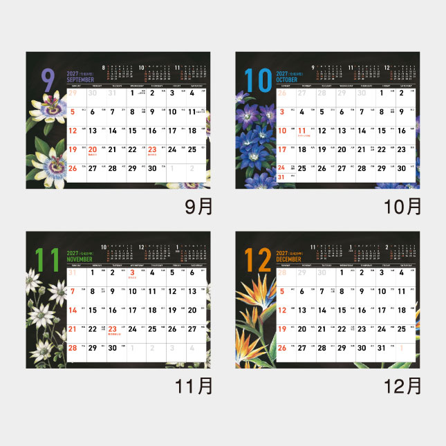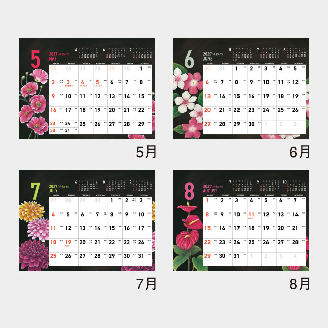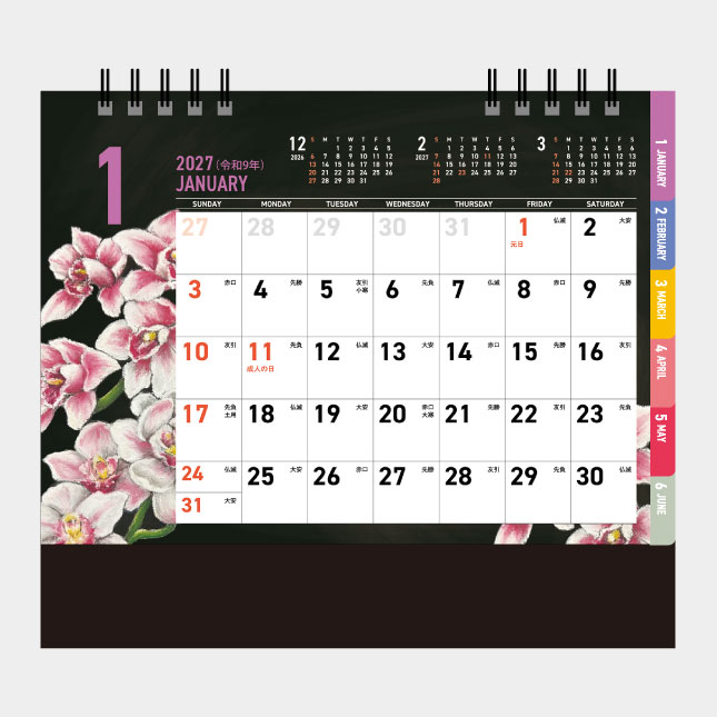 ★表面は六曜表示と二十四節気が入り、大きく描かれた花で季節を感じさせてくれます。