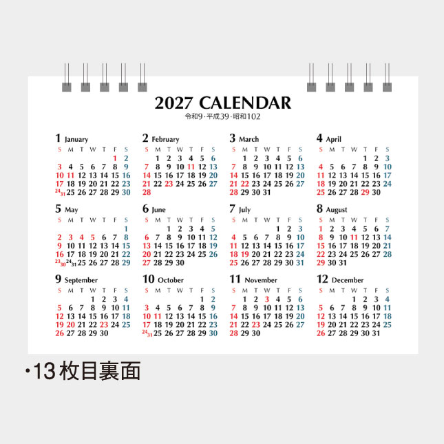 裏面は6週表記のシンプルなデザイン。両面使えるカレンダーです。
