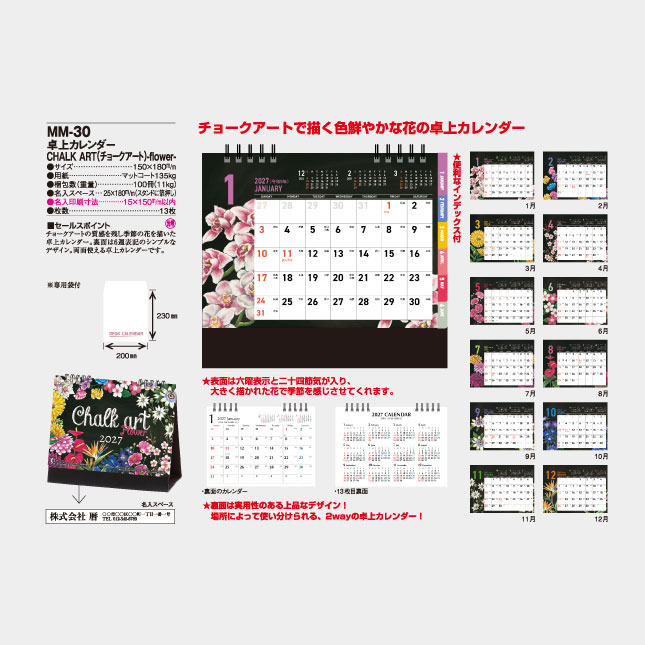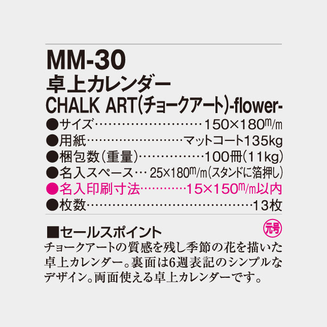 卓上 カレンダー CHALK ART(チョークアート)−flower− MM-30(NK-572) の特徴