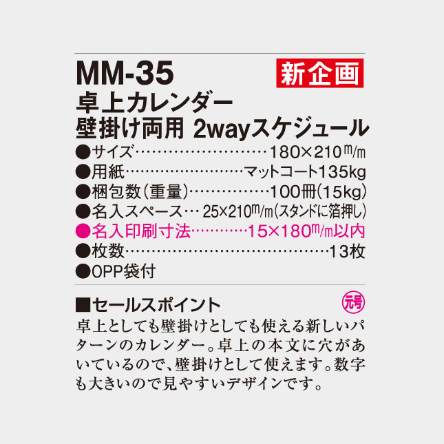 卓上 壁掛け両用2wayスケジュール MM-35(NK-581) の特徴