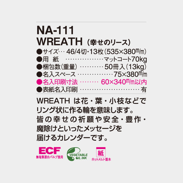 WREATHは花・葉・小枝などでリング状に作る輪を意味します。