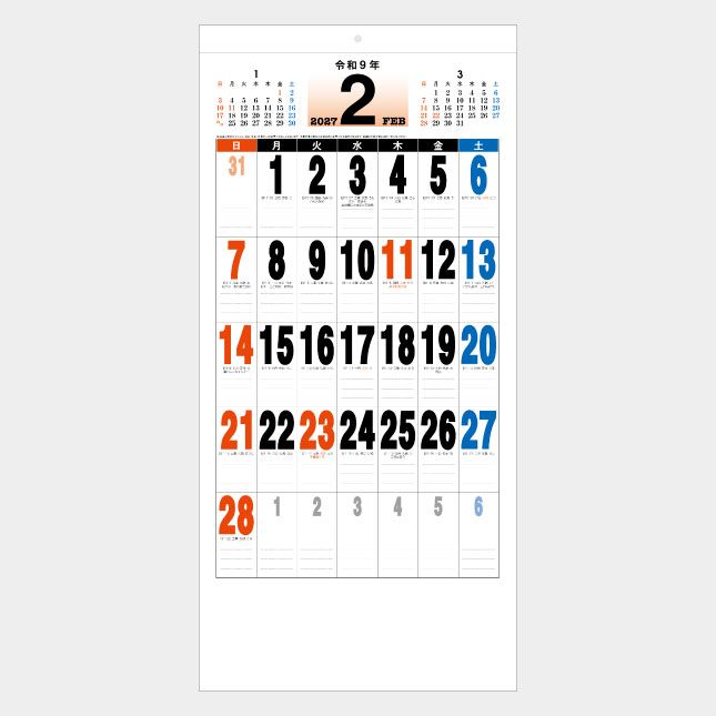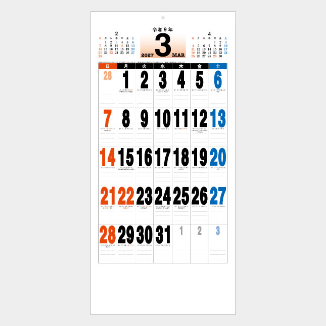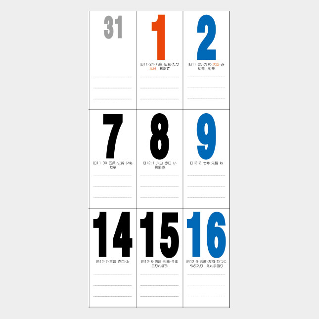 太い数字で遠くからも見やすく、メモ欄には罫線も入って便利です。