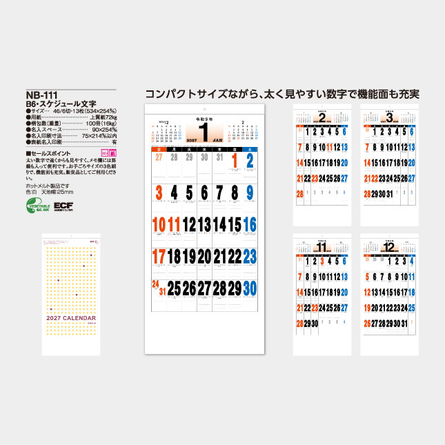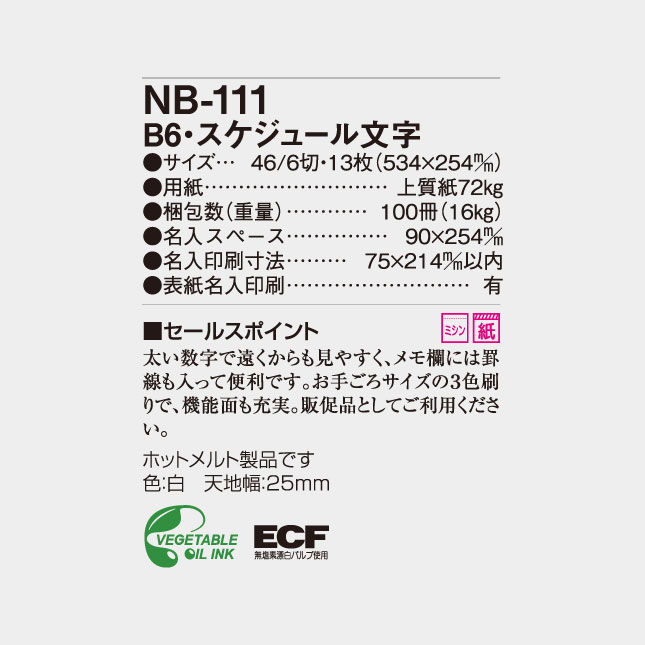 B6・スケジュール文字月表 NB-111 の特徴