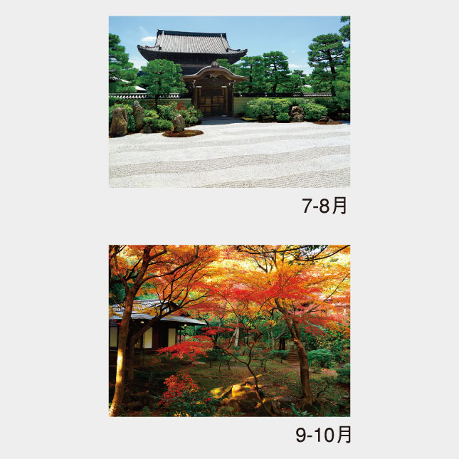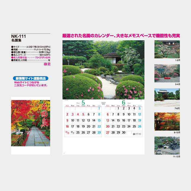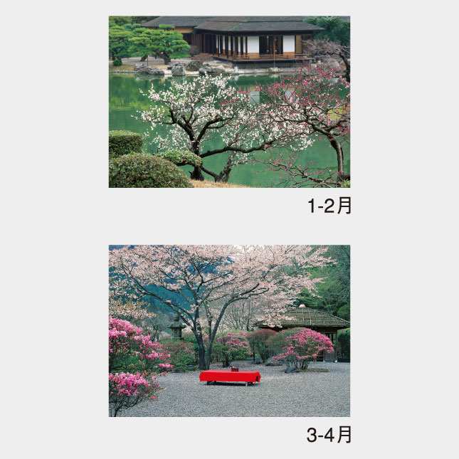 厳選された名園のカレンダー、大きなメモスペースで機能性も充実