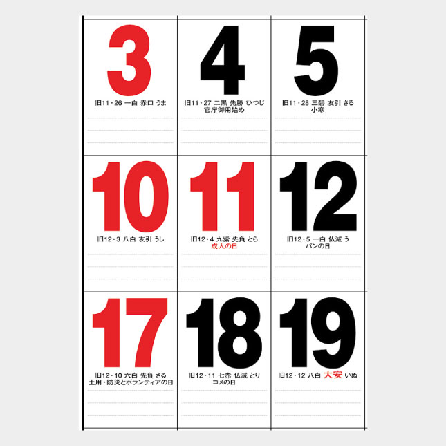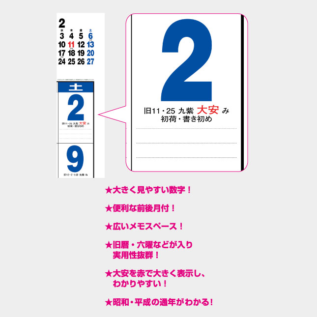 大きく見やすい文字・旧暦・六曜入りで実用性抜群!