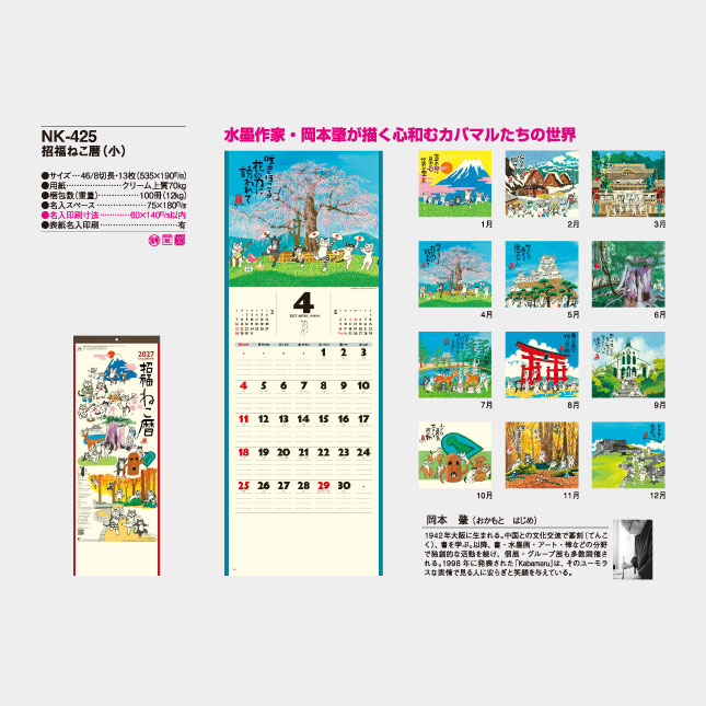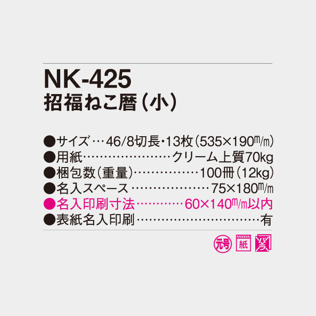 NK-425 招福ねこ暦(小)【535×190mm 46/8切長】