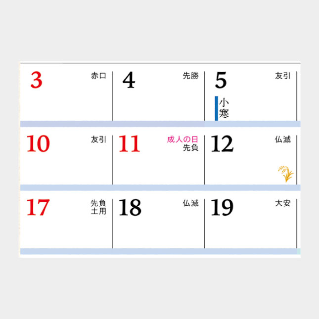 六曜・旧暦・一粒万倍日・月の満ち欠けなど暦情報満載です。