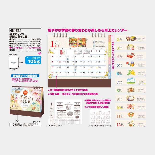 細やかな季節の移り変わりが楽しめる卓上カレンダー