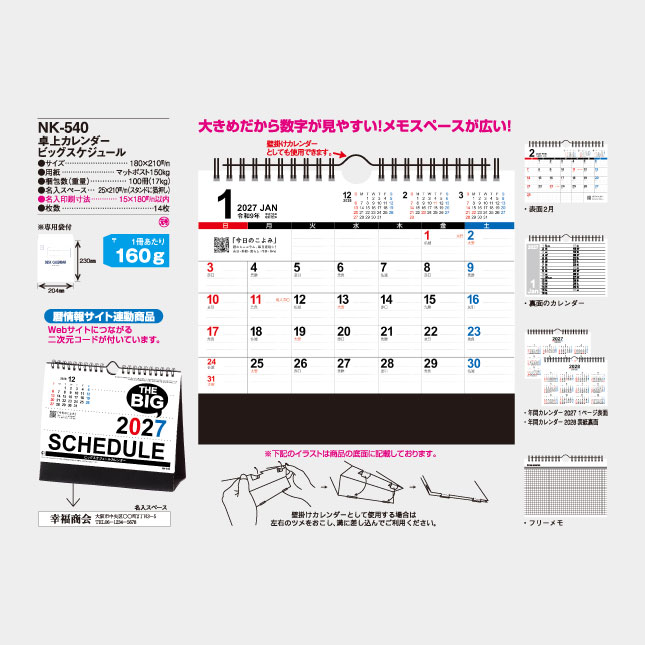 その名の通り、通常の卓上カレンダーより大きめだから数字が見やすく、もちろんメモスペースも広くなっています。