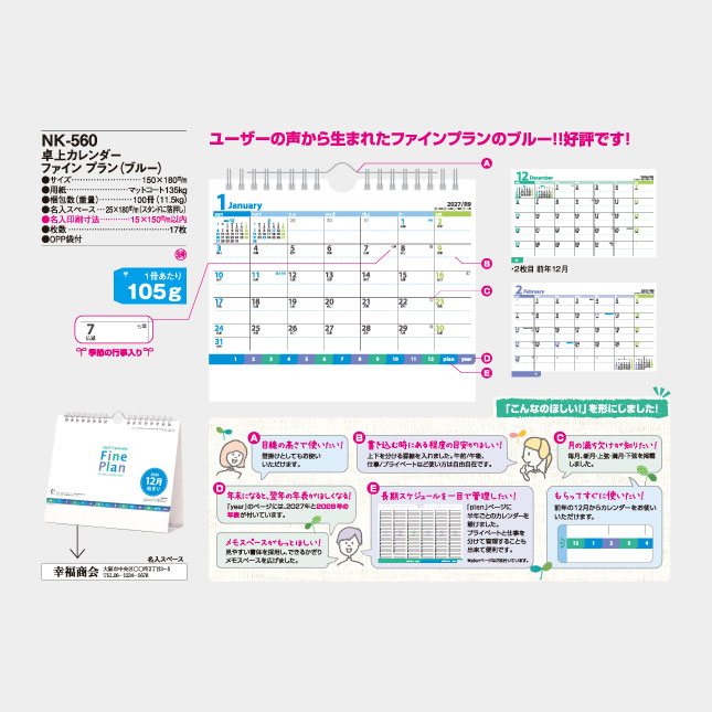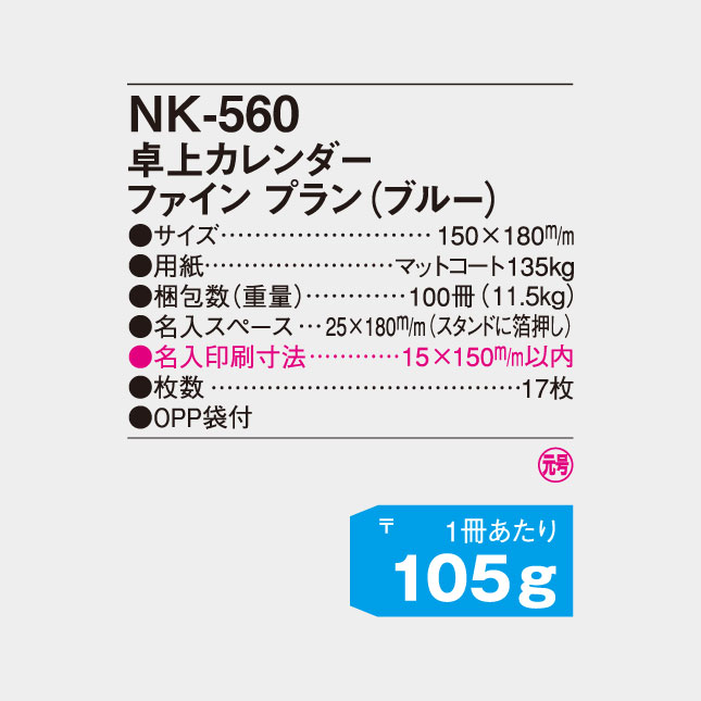 卓上 ファイン プラン(ブルー) NK-560 の特徴