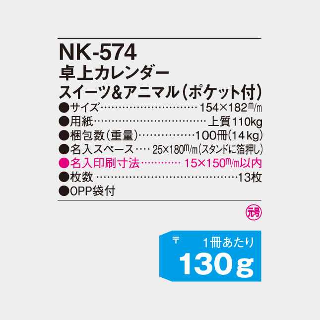 卓上 スイーツ&アニマル(ポケット付) NK-574 の特徴