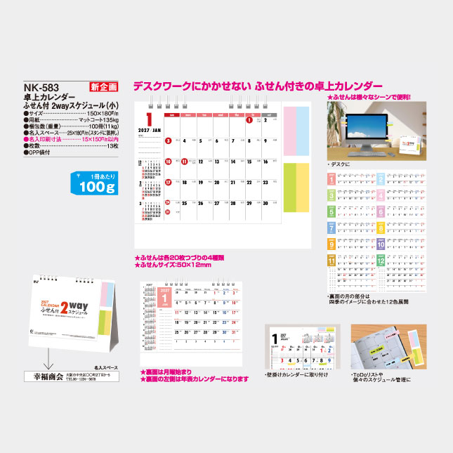 卓上 ふせん付き2wayスケジュール(小) NK-583 の特徴