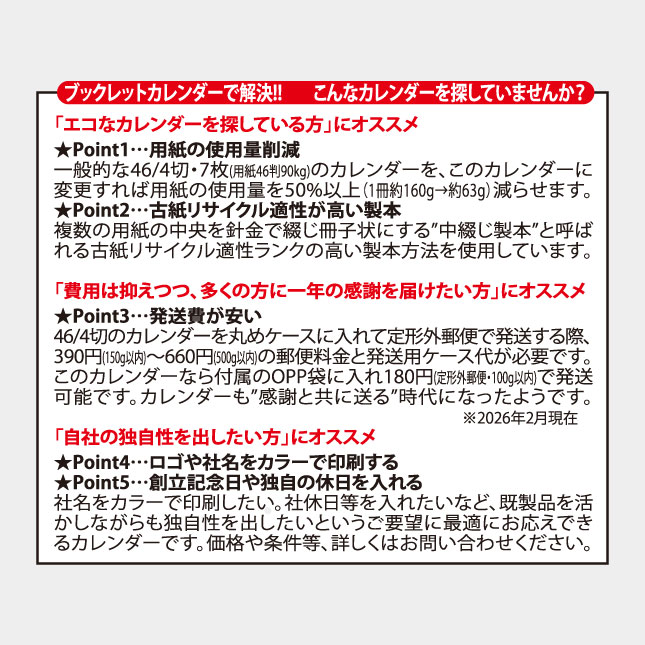 ※このカレンダーは黒1色の対応となります。カラー名入れができません。