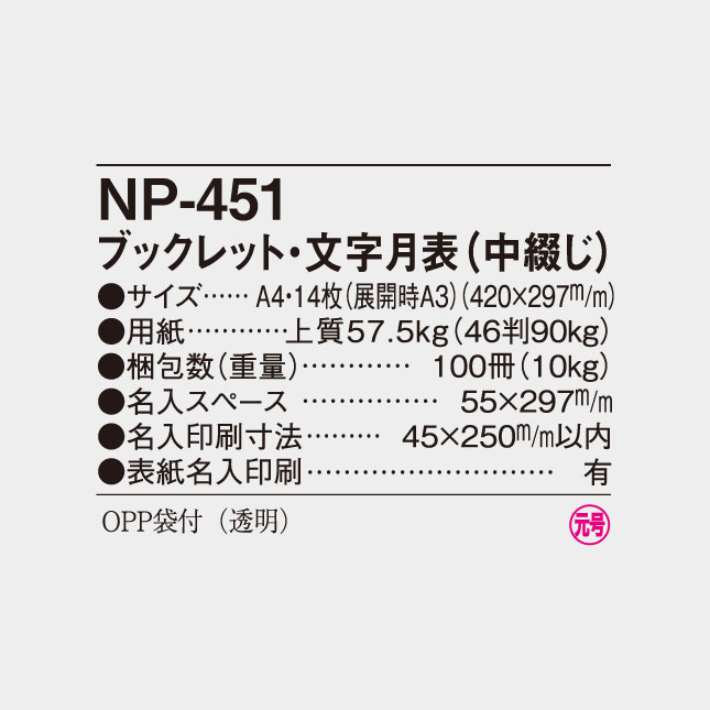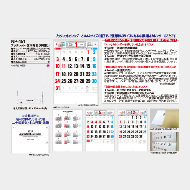 ブックレット・文字月表(中綴じ) NP-451 の特徴