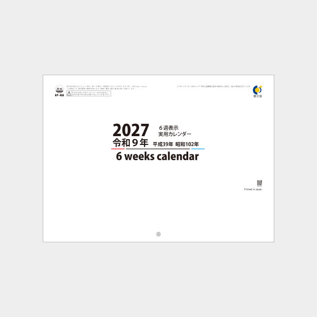 6週間表記で前月1ヶ月・後つき2ヶ月付きの実用的カレンダーです。