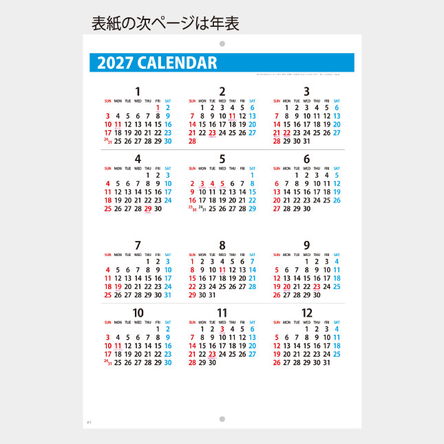 ※このカレンダーは黒1色の対応となります。カラー名入れができません。