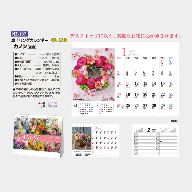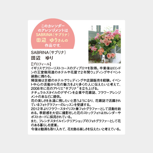 このカレンダーのアレンジメントはSABRINA(サブリナ) 田辺ゆりさんの作品です。