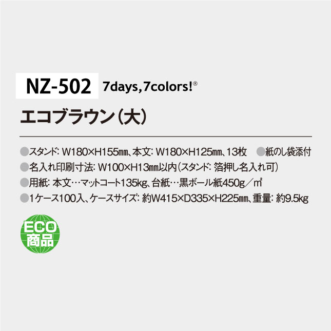 ホーム > 商品 > 卓上カレンダーから探す > 卓上の特徴から探す > 10部から注文可能商品 > NZ-502S 卓上 エコブラウン(大)【短納期】
