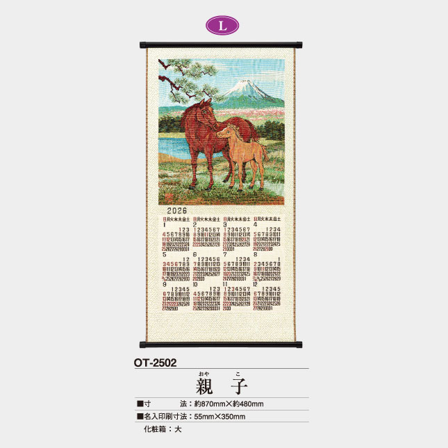 ゴブラン織カレンダーは、シルクスクリーン印刷で名入れを行います。また織物に印刷するため、小さな文字、細かい線、網掛けなどは表現できませんのでご注意ください。