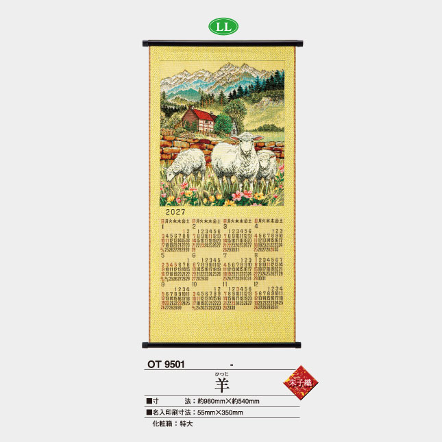 朱子織カレンダーは、シルクスクリーン印刷で名入れを行います。また織物に印刷するため、小さな文字、細かい線、網掛けなどは表現できませんのでご注意ください。