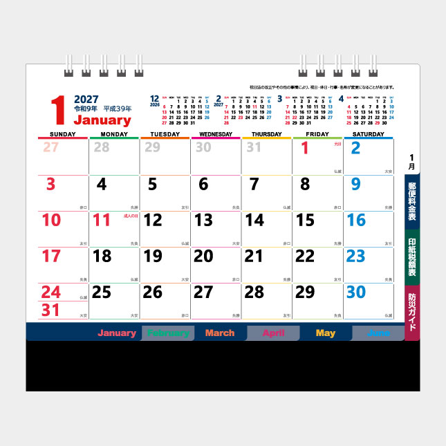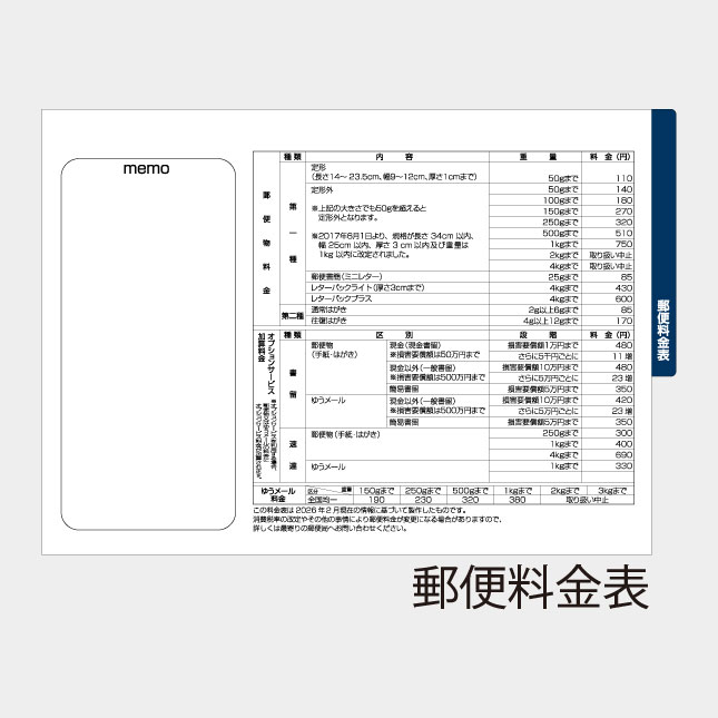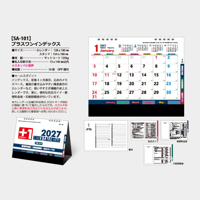 更に、便利な防災ガイド・郵便料金表・印紙税額表が付いています。