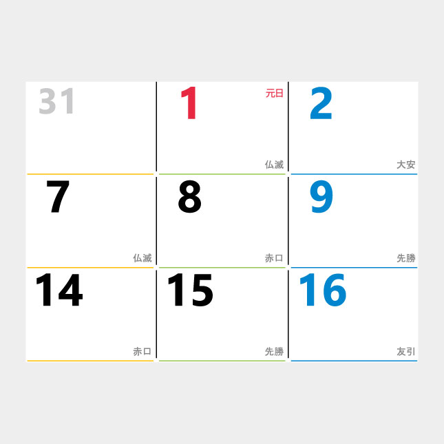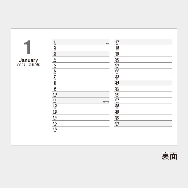 インデックス、前後4ヶ月表示、広めのメモスペース、