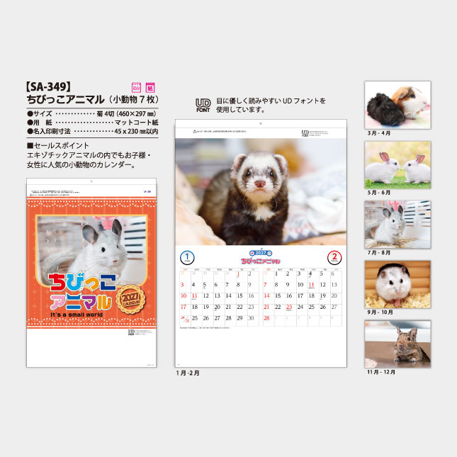 エキゾチックアニマルの内でもお子様・女性に人気の小動物のカレンダーです。