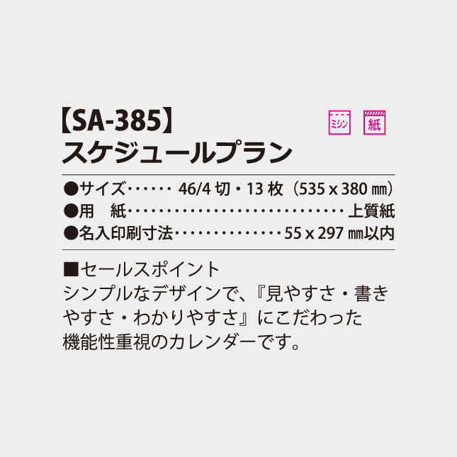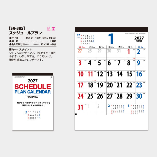 シンプルなデザインで、「見やすさ・書きやすさ・わかりやすさ」にこだわった機能性重視のカレンダーです。