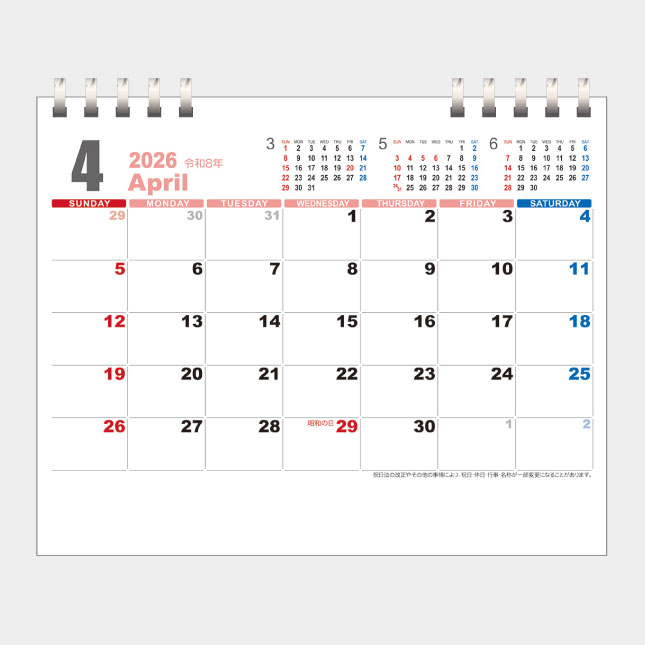 4月始まり(2026年度版)卓上カレンダー