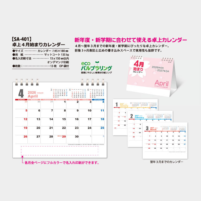 SA-401【4月始まり】卓上4月始まりカレンダー