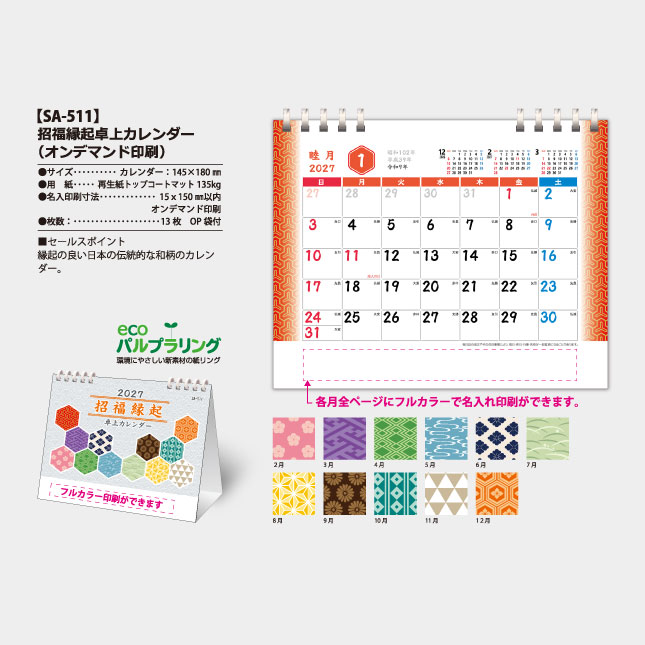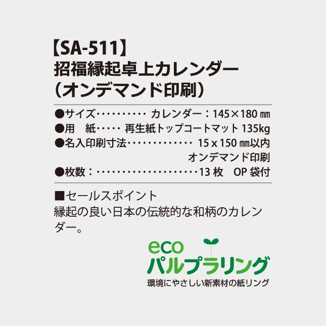 ホーム > 商品 > 卓上カレンダーから探す > ペーパー&エコリング製本 > SA-511 卓上 招福縁起卓上カレンダー(オンデマンド印刷)