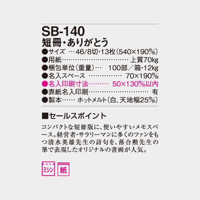 SB-140 短冊・ありがとうカレンダー