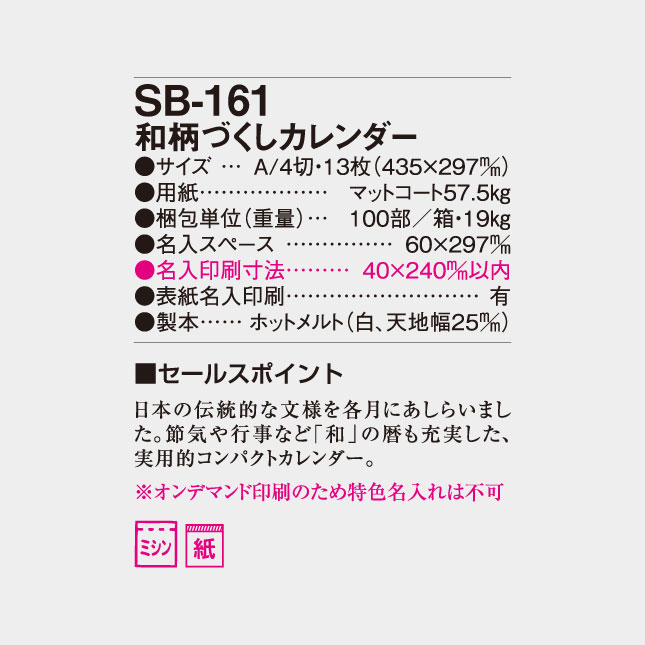 和柄づくしカレンダー SB-161 の特徴