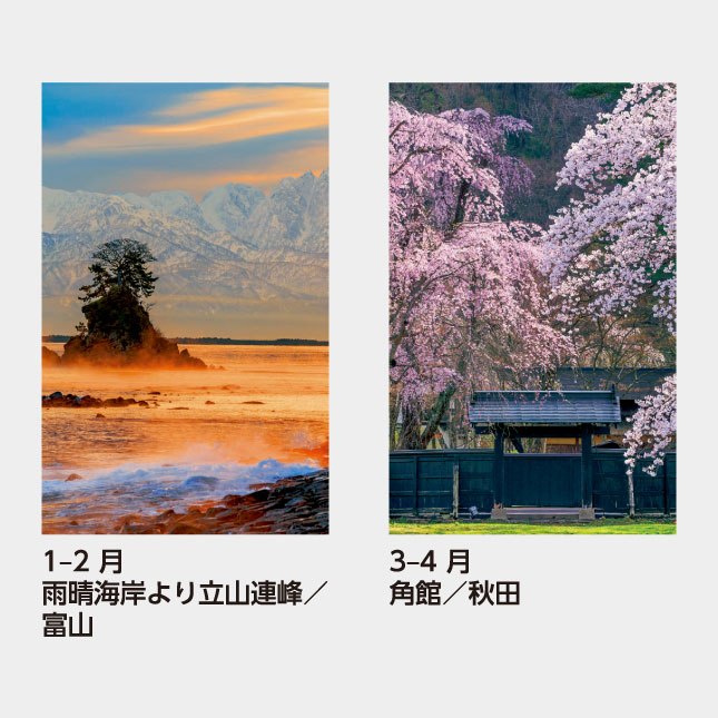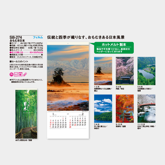 フィルムにグラビア印刷した高級カレンダーで、贈答に最適。