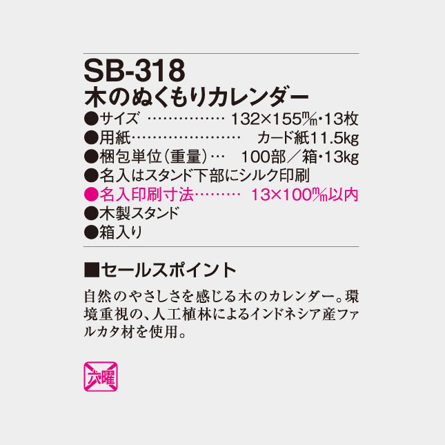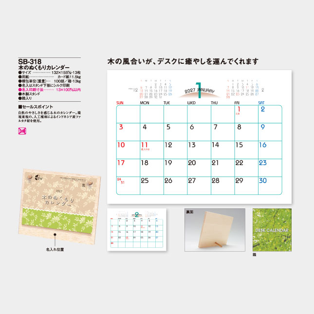 卓上 木のぬくもりカレンダー・カラー名入れ SB-318C の特徴