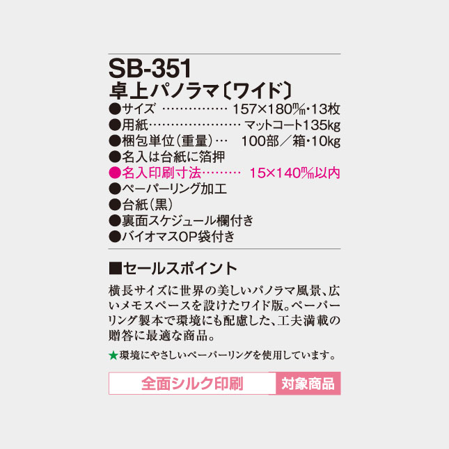 卓上 パノラマ(ワイド) SB-351 の特徴